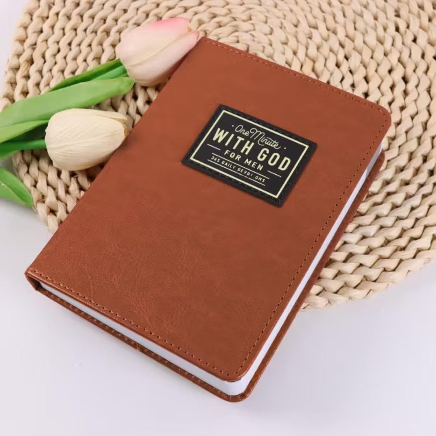 - Brown faux leather cover — sleek, masculine, gift-ready